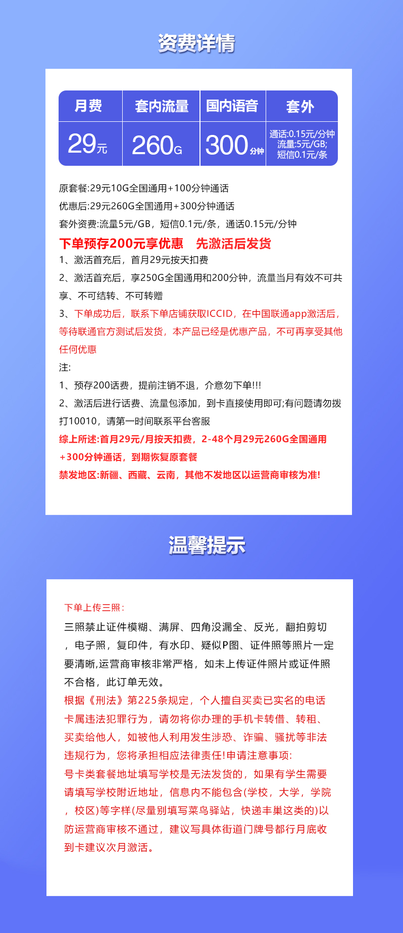 1、预存200话费,提前注销不退,介意勿下单!!!