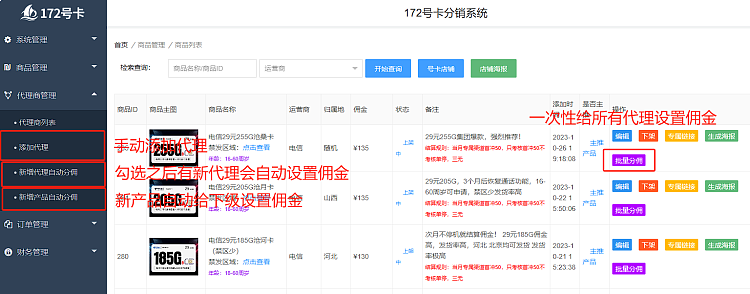 3. 新增产品自动分佣”是针对未上架的新产品,按照百分比给下级代理分佣的。